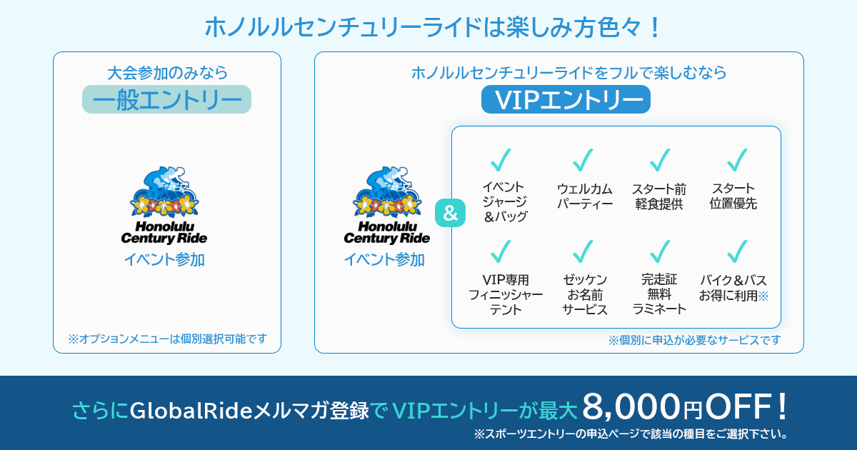 グローバルライド会員(Global Rideメルマガ会員登録)の方は、一般エントリー(大人)から2,000円引きで申し込むことができます。