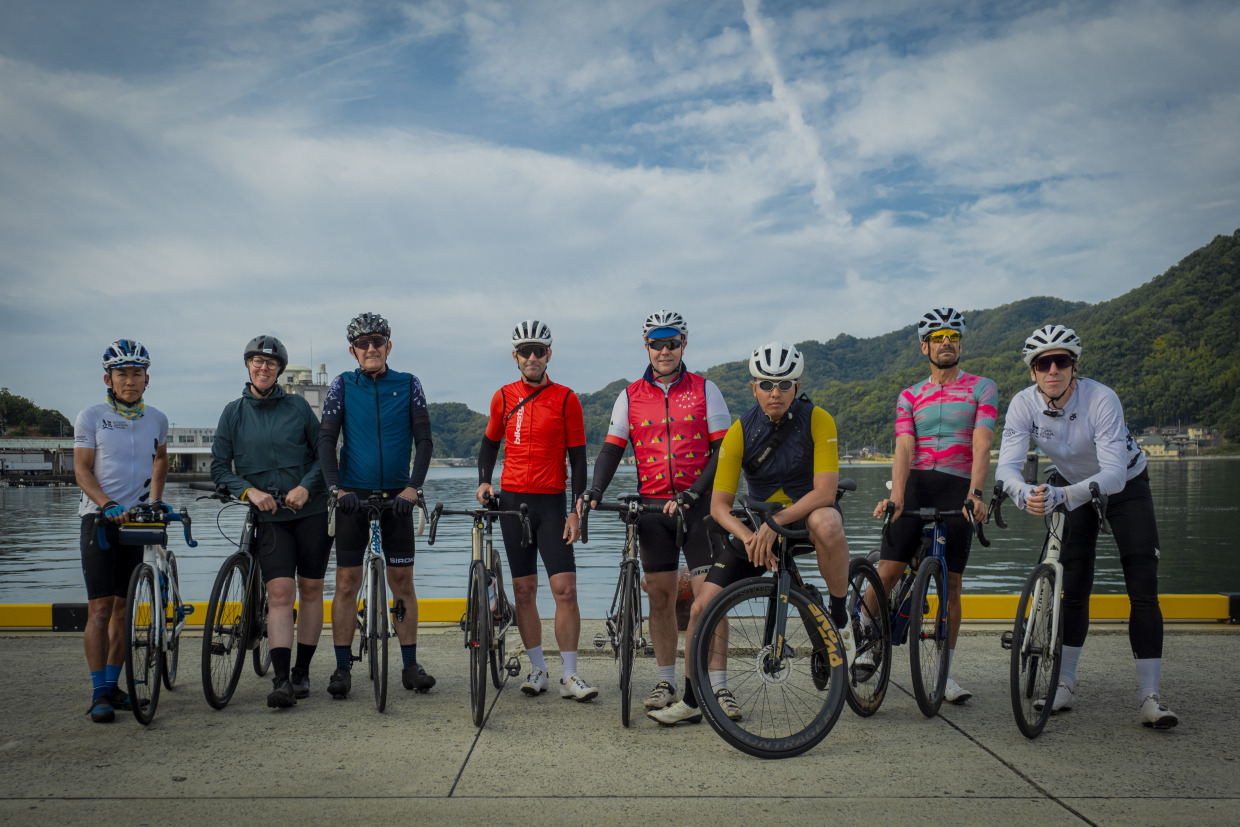 秋深まる好日、松山空港に輪行バッグを抱えた外国人の一団が到着。シドニー、メルボルン、ブリスベンなど、オーストラリアの主要都市を拠点に活動するメディア関係者、旅行会社スタッフ、インフルエンサーなど多彩な面々だ。恒例となった愛媛一周プレスツアーに招聘されたオーストラリアのサイクリストたちだ。行程を確認すると、定番のしまなみ海道やUFOラインに加え、山岳景勝地として名高い四国カルストへのビッグクライム、南予のリアス海岸線ライド、佐田岬巡り、さらに各地の遍路道を巡り、終着地の松山道後温泉を目指す、多彩な愛媛一周ライドとなっている。今年は、連日100km超のロングライドが設定され、チャレンジングな内容だ。愛媛県の本気度は2年目にしても半可ではないし、対するオーストラリアン軍団の英気とて見るからに十分。互いにがっぷり四つの格好だ。この国内では珍しい超本格プレスライドツアーに、今年も本誌カメラマンが全日程帯同。伊予柑のようにフレッシュなレポートを、ぎゅぎゅっと絞って撮って出し!いざ!